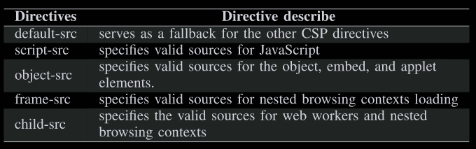 The directive default-src serves as a fallback for the other CSP. If there is no whitelist for other directives, the browser will get resources based on the whitelist of the default-src directive (Lv, Shi, et al., 2023)