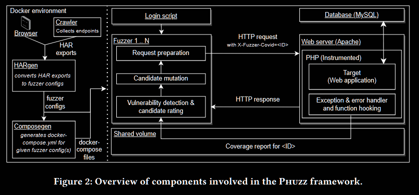 • Shared volume: Phuzz uses an in-memory Docker volume to provide a shared filesystem for information exchange between all containers